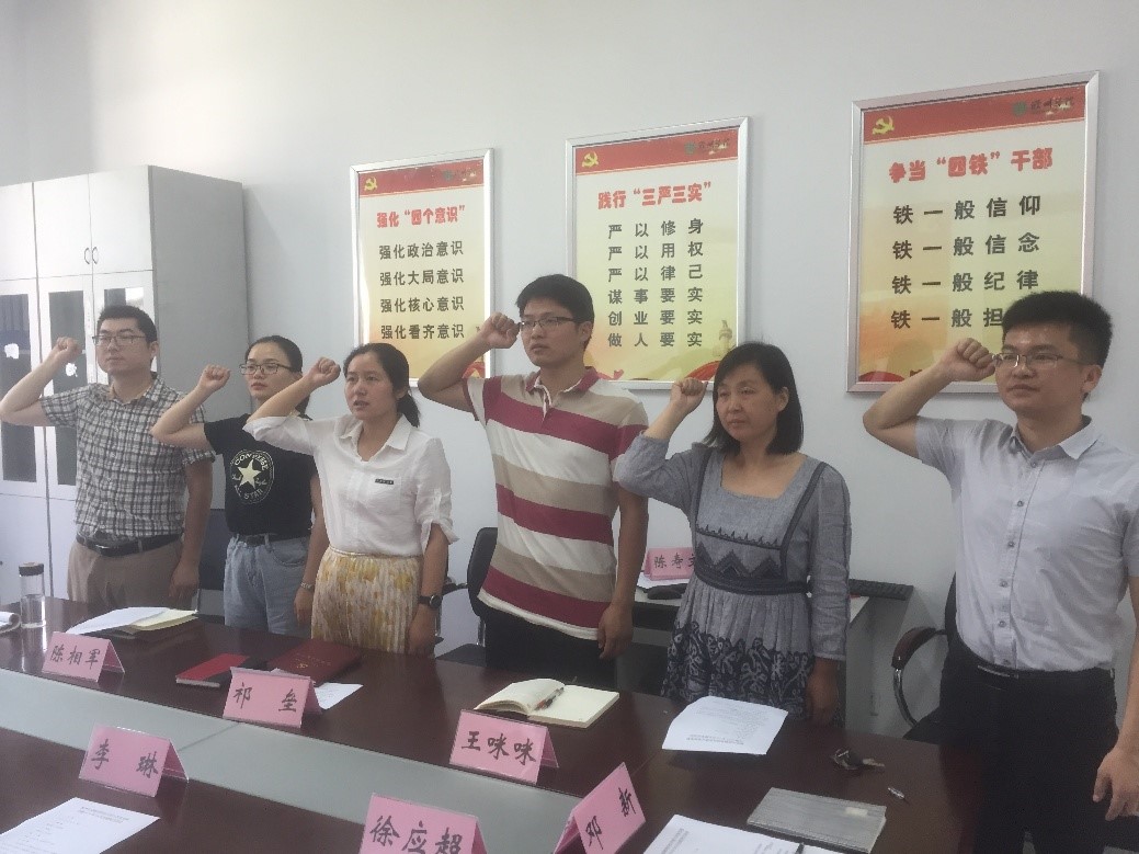 最后,党员教师在系主任余晓美的带领下重温了入党誓词:“我志愿加入中国共产党,拥护党的纲领,遵守党的章程,履行党员义务……”。全体党员教师庄严肃穆地举起右手,重温自己对党忠诚的誓言。铿锵的誓词,坚定的承诺,也让每一位党员教师的心灵再次受到震撼和洗礼。