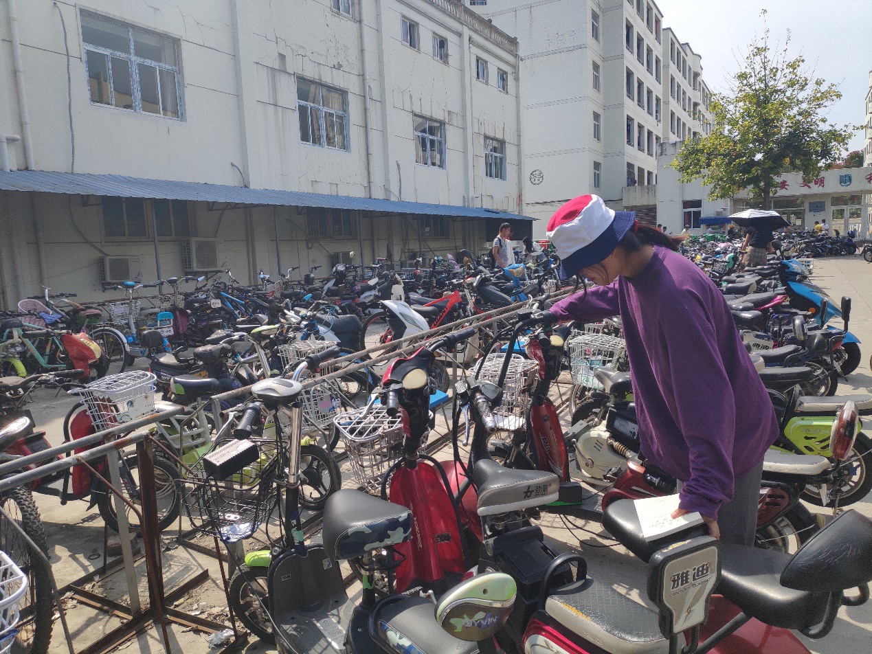活动开始前,支部成员询问宿管阿姨车辆正确摆放位置,与宿管阿姨交谈结束后,支部全体成员开始对电动车、自行车、废旧车辆等违规摆放进行处理。由于时间是中午学生放学,仍有许多车辆往来,多数车辆不能按照正常位置摆放。支部成员分为两小队,一队引导骑车学生将车辆摆放至指定位置,另一小队对已停放车辆进行重新摆放。活动最后,支部党员将车辆按照规定停放在停车场。