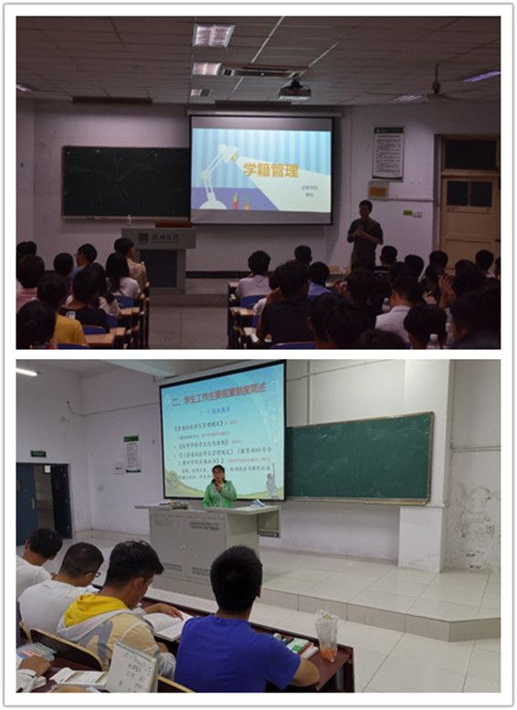 9月22日晚,院党委委员、正科级辅导员庞玲玲、教科研秘书蔡杨为2019级新生作了学籍管理制度和《学生手册》学习专题辅导讲座。以生动鲜活的案例,让新同学熟悉学校学籍管理制度和各项规章制度,增强纪律意识,自觉遵守各项规章制度,做一个纪律严明的新时代大学生。