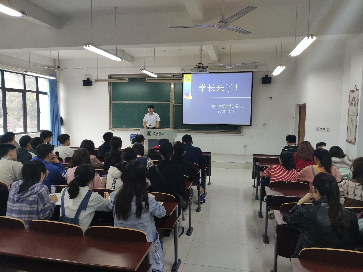 此次专业认知实习邀请滁州市统计局贸易外经科陈庆科长、安徽经典市场调查咨询有限公司程局新总经理,他们结合自己实践公务员考试经验分享、统计调查基础业务知识、择业与创业等问题分别做了精彩纷呈的报告。此外,经济统计系部分老师也积极参与到专业认知实习活动过程中。专业认知实习期间,学生和导师们互动频繁,通过与导师的交流及时解答了心中的疑惑,基本了解以后的就业方向和前景,对未来人生职业规划更加清晰,对专业的认知程度也更加深刻。