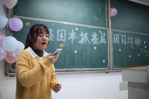 活动伊始,团支书曹雅洁鼓励同学们把读马克思主义经典悟马克思主义原理作为生活习惯和精神追求,为实现中国梦贡献智慧和力量。慕祥通过播放PPT向同学们介绍“保基层,固基本”旨在引导广大青年做勇担民族复兴大任的新时代的追梦人,以实际行动不断努力进取,争取成长为有理想,有本领,有担当的社会主义接班者和接班人。活动的最后,为展现青春活力,班委组织同学们进行了歌唱演奏,小品表演等。通过这些活动让同学们更好的展现了自己的风采,领略时代风骚。