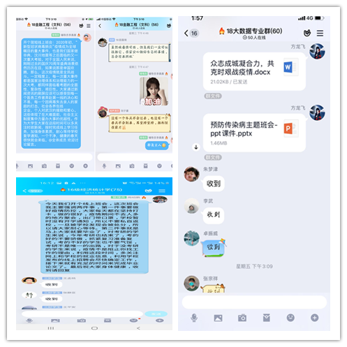 领会文件精神,把握疫情动态。金沙威尼斯官网各团支部利用线上网络交流平台为依托,通过班主任、辅导员班级线上组织发起,使用QQ、微信、易班等社交软件传达发布《关于立即行动起来投身新型冠状病毒感染肺炎防控工作的通知》、《关于坚持党的领导,全团动员,在防控疫情阻击战中充分发挥共青团生力军和突击队作用的通知》等文件和全国每日疫情动态新闻,要求学生党员、班干部带头学习,各班学生主动学习,认真学习领会文件精神,掌握最新疫情动态,自觉提高疫情防护意识。