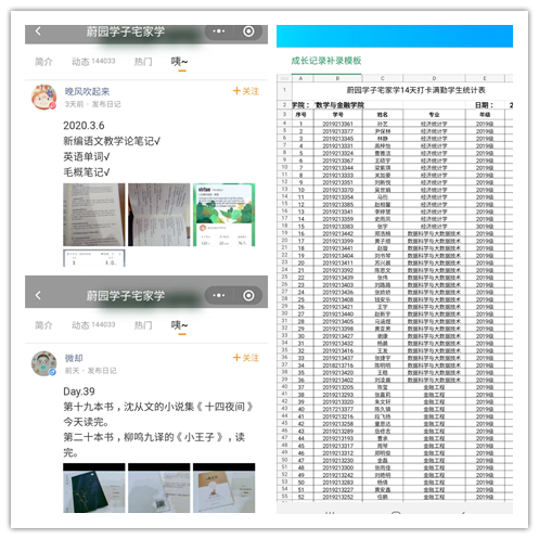 开展学习活动,合理规划人生。各团支部积极参加校团委开展的“连续14天学习打卡”活动、寒假读书笔记活动,同时利用线上平台创建学习小组讨论群,交流学习经验,保证学习效率的同时,也提高了学习热情,真正做到了停课不停学。