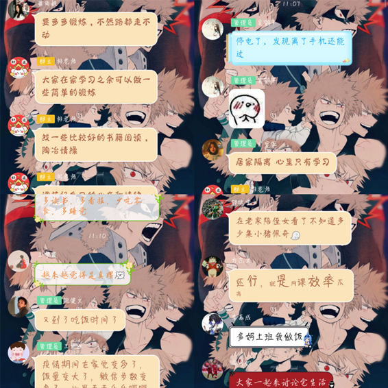 在本次班会中,心理委员李文青指出受疫情影响,长期“宅家”的同学极易产生负面情绪,不利于自身的身心发展,对此,同学们应当主动培养积极心态,要做到乐观的面对现实,强化自身的责任感,合理安排自己日常的学习生活。会议最后,班主任相旭东组织同学们围绕如何培养积极心态这一问题进行讨论,并让同学们展示自己“宅家”期间缓解负面情绪的有效方法。