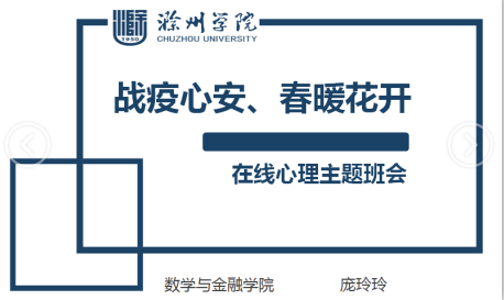 为加强新冠肺炎防控期间学生的心理健康教育引导工作,金沙威尼斯官网19级金融工程、19级经济统计学专业于3月11日下午分时段召开了以“战疫心安、春暖花开”为主题的网络班会。