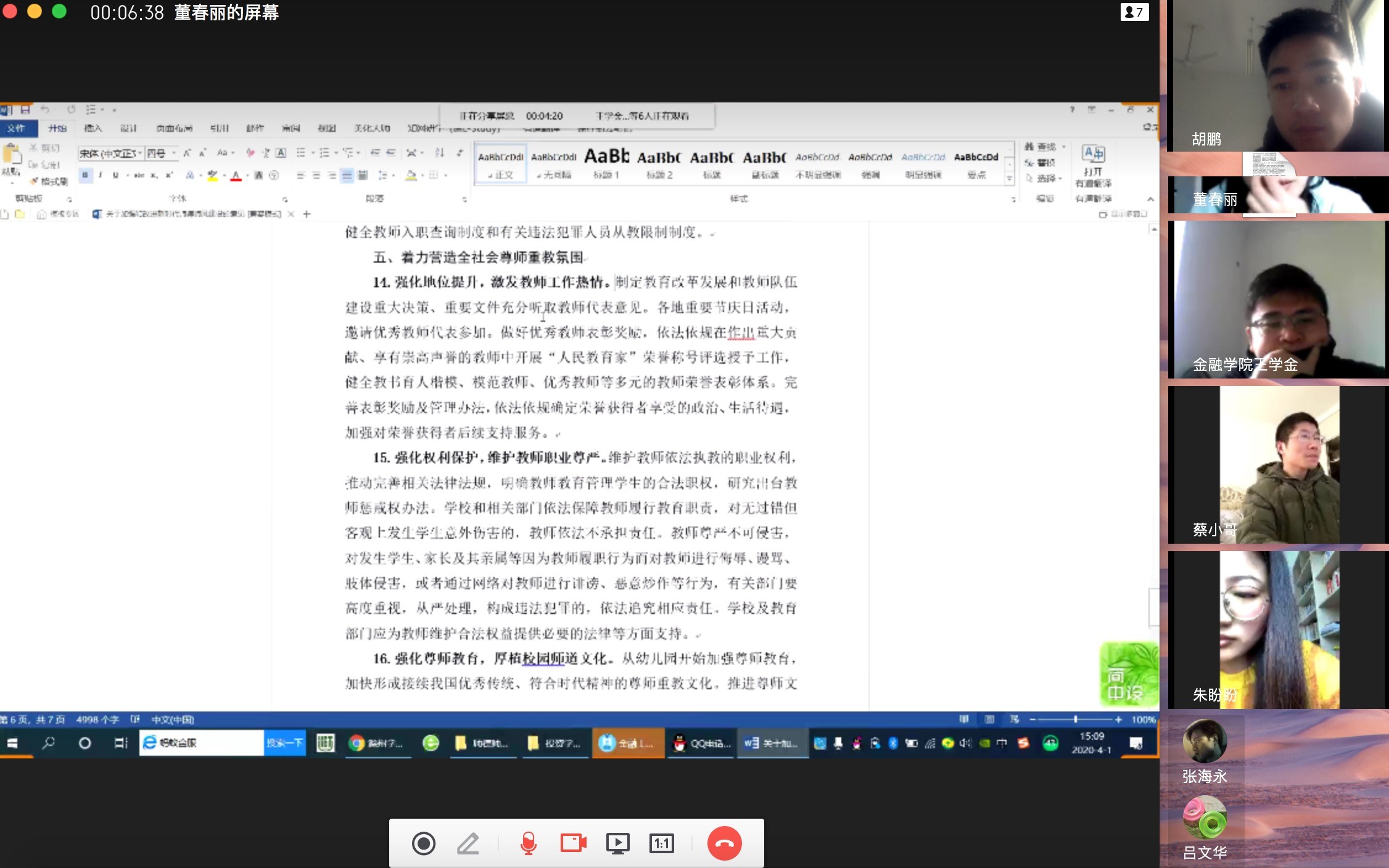 首先,会议学习了《关于加强和改进新时代师德师风建设的意见》,金融工程系张海永表示,在疫情防控的特殊时期,整体教学工作受到了空前的考验,课堂育德尤为关键,教师党支部和党员教师应当发挥带头作用。应用数学系王兵表示,日常教育是师德师风建设的重点,要将立德树人渗透到日常教学和学生工作中。其他教师也分享了师德涵养与教育教学工作、立德树人实践结合的一些思考。其次,部分线上教学的老师分享经验与不足,提出并讨论改进方法,经济统计系朱方霞分享了在中国大学MOOC平台的教学经验,她从众多网络资源中筛选优质课程资源并进一步剪辑,以适应本校学生学情。最后,各系安排相关教学工作,金融工程系部署了安徽省金融投资创新大赛的校赛实施方案,经济统计系部署了安徽省市场调查分析大赛的作品推荐工作,同时,各系就落实“双创”项目指导、专升本人才培养方案的修订工作进行了讨论。