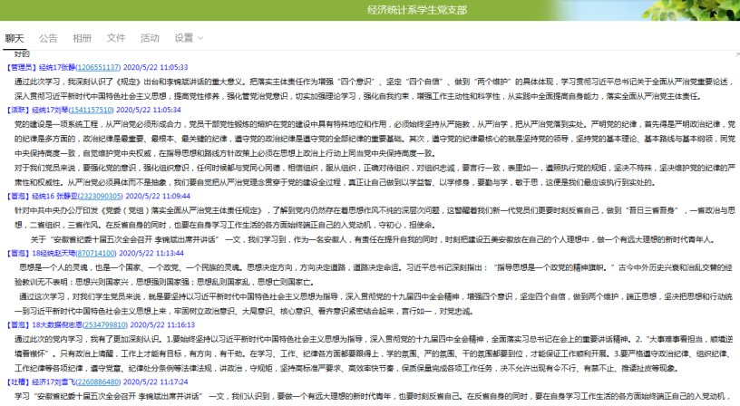 金沙威尼斯官网经济统计系学生党支部于5月22日上午11点召开线上会议,深入学习中共中央办公厅印发的《党委(党组)落实全面从严治党主体责任规定》和李锦斌出席安徽省纪委十届五次全会的讲话。