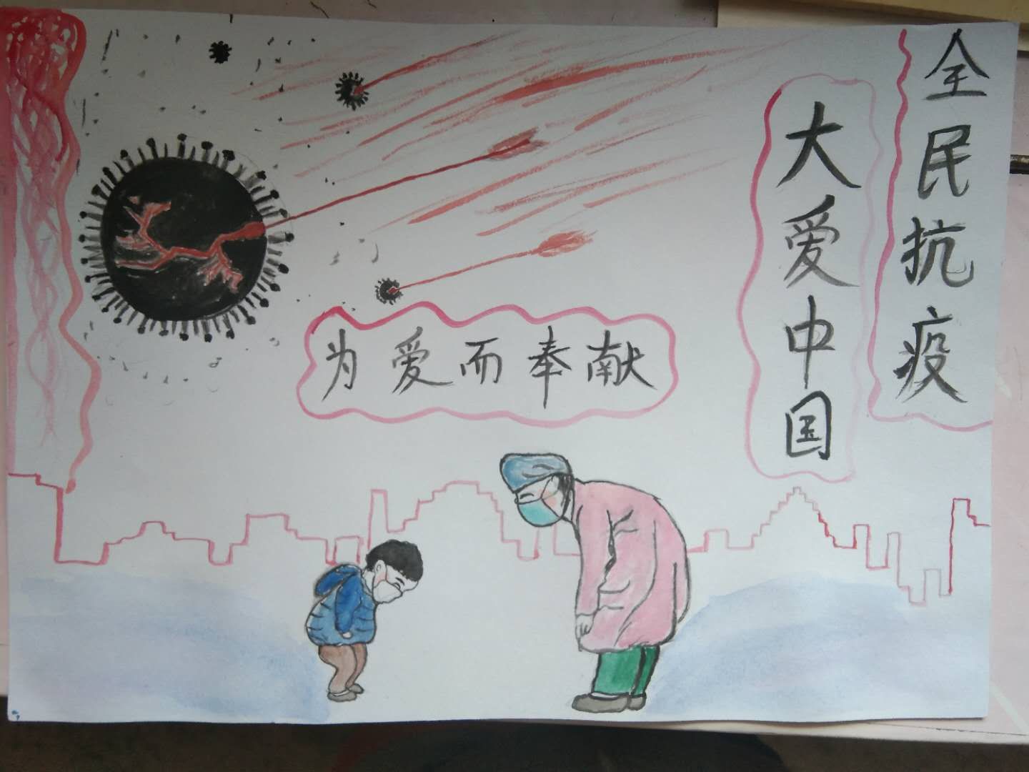 心理绘画征集活动开展以来,得到同学们的热烈响应。各作品内容涵盖了同学们在疫情期间所见、所闻、所感,丰富多彩、主题明确,具有较好的欣赏性。参赛选手将心理学知识与艺术表达形式结合,吸人眼球。经过评委们的一致评选,共挑选出9幅较为优秀的作品: