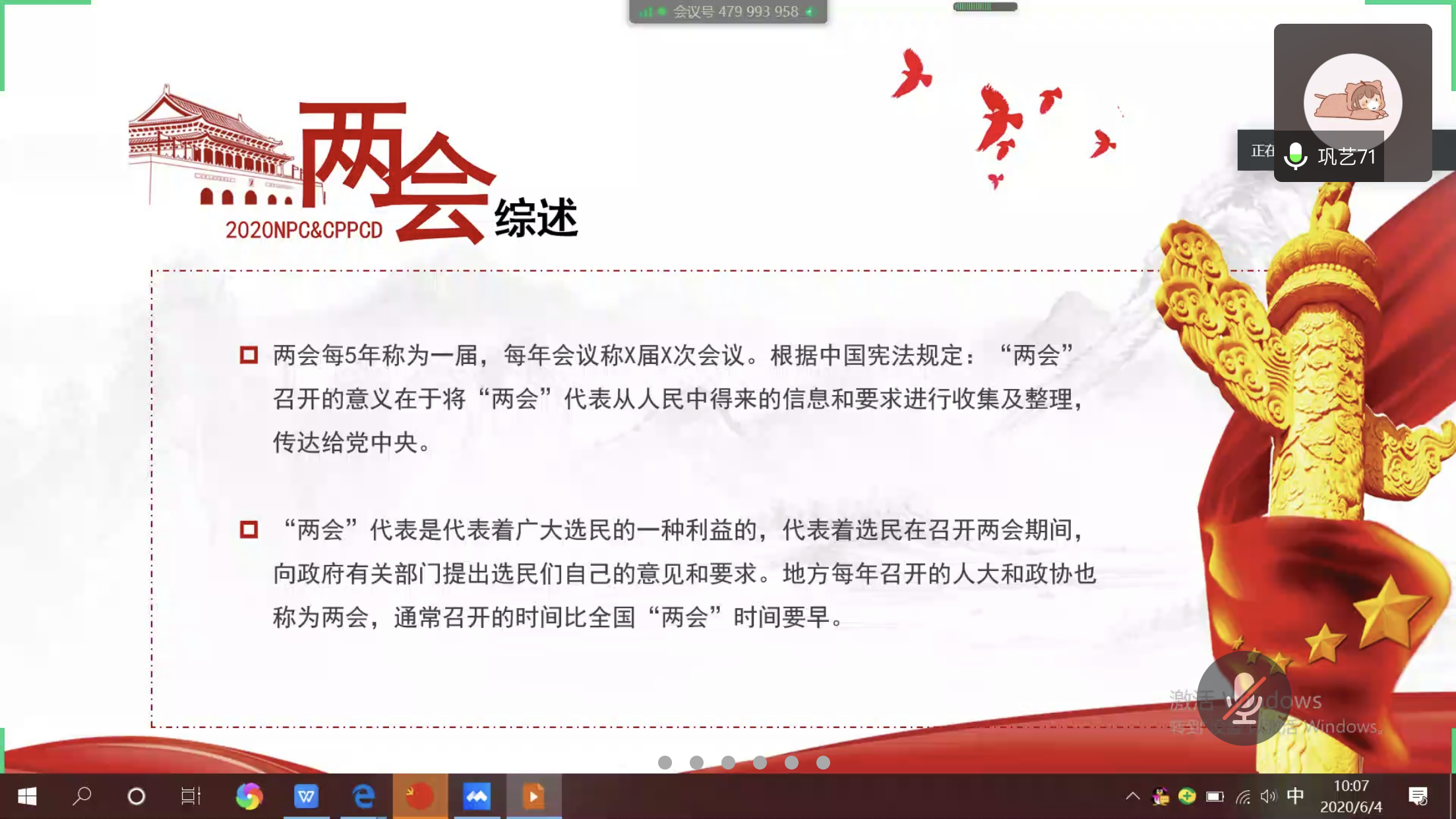 为全面贯彻落实党的十九届四中全会精神、习近平新时代中国特色社会主义思想,深入学习2020年全国两会精神,了解两会相关资讯,做好支部学生党员的思想引领工作,金融工程系学生党支部于6月4日利用腾讯会议的形式开展了线上主题党日暨理论学习活动。
