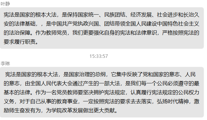 7月15日下午14:30,金沙威尼斯官网经济统计系党支部通过网络召开线上7月份主题党日暨宪法知识学习。经济统计系党员参加会议学习并通过qq群文字输出的方式进行讨论,本次会议由徐应超主持。