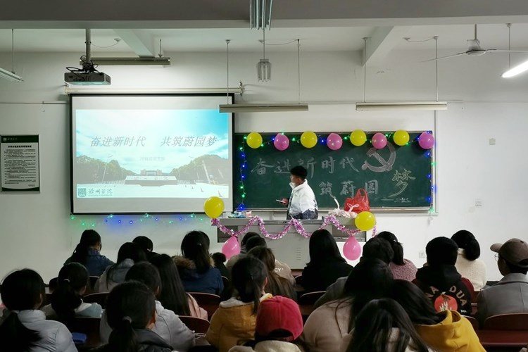 活动伊始,我校七十年的校史在PPT上映入大家的眼帘,让初入校园的20级新生对我校的发展有了更充分的了解,并增强了各位同学对学校的荣誉感和归属感。随后,团支书帅驰向大家展示了我校获得的众多荣誉,体育、文艺、竞赛等荣誉应有尽有。在意犹未尽之时,一段关于海内外祝福我校七十周年的录像将本次活动推向了高潮。在同学们情绪高涨之际,团支书带领大家共同喊出了“奋进新时代,共筑蔚园梦”口号,并齐唱校歌《琅琊翰墨育栋梁》庆祝我校70周年,为本次团日活动拉上了帷幕。