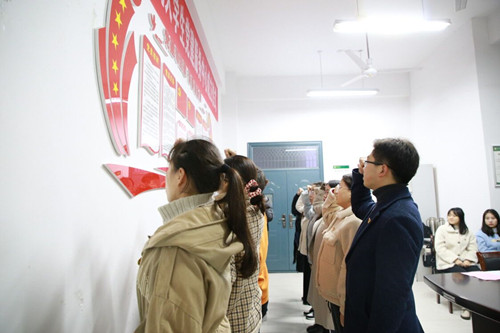 仪式后,大学生党建服务中心开展了为新党员佩戴党员徽章、重温入党誓词宣誓活动。(通讯员:王学金)