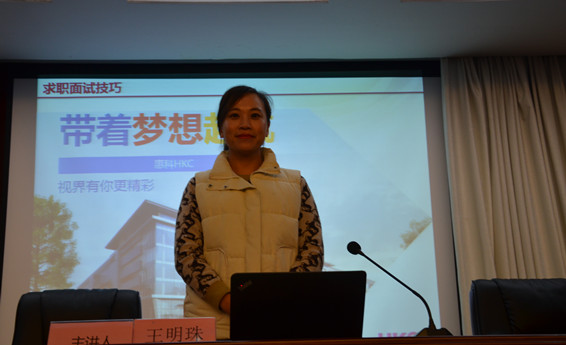 11月25日晚,金沙威尼斯官网在会峰校区行政楼二楼报告厅举办了关于就业指导方面的面试礼仪讲座。此次讲座邀请到滁州惠科光电有限公司的HR主管王明珠作为主讲人,讲座由金沙威尼斯官网党委书记李琳主持。