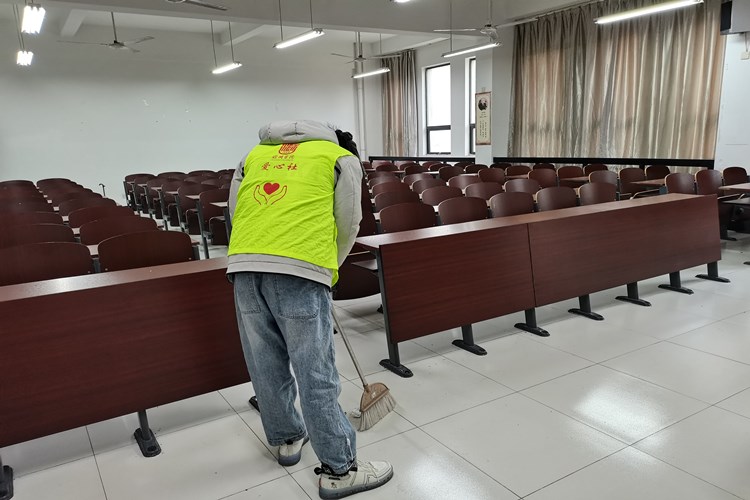 为了活动的有序展开,志愿者们被分成四组,由社干带领分别负责四栋教学楼的打扫工作。上午八点活动正式开始,志愿者们穿上了爱心社的社服,在负责人的带领下进入各栋教学楼开始打扫。活动期间,同学们分组进入教室,擦拭黑板,收拾讲台,为老师提供了一个整洁的教学平台。对于桌椅凌乱的教室,志愿者们将桌椅摆整齐,并将桌子上的垃圾倒入垃圾桶内,用实际行动给同学们换来了更加整洁的学习环境。大家干得热火朝天,充分发挥了志愿者们不怕脏、不怕累的奉献精神。