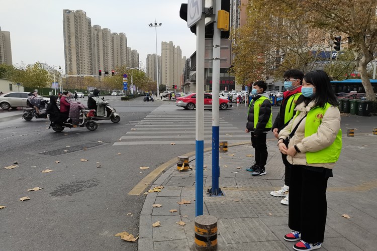 下午一时四十分,志愿者们来到了图书馆门口集合,随后分发并穿戴爱心社社服,一切准备就绪后大家一起乘坐18路公交车前往苏宁广场。到达目的地后24名志愿者被分成了两批,前往不同的地点开始执行任务。到达工作岗位之后,志愿者们不畏寒冷的天气,站在路口旁向需要帮助的人伸出援手。例如,帮助老人过马路、阻止行人闯红灯、提醒行人过马路时不要低头玩手机等。最后在大家的欢声笑语之下顺利的结束了本次任务,志愿者们集体合影、留恋。