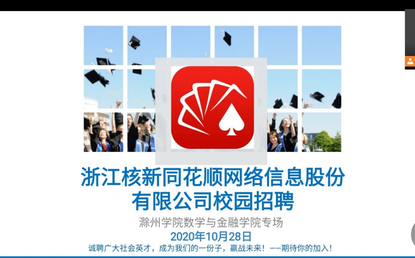 10月28日下午,金沙威尼斯欢乐人城在YF4103举办了浙江核心同花顺网络信息股份有限公司线上招聘宣讲会,该院部分学生参加了宣讲会。