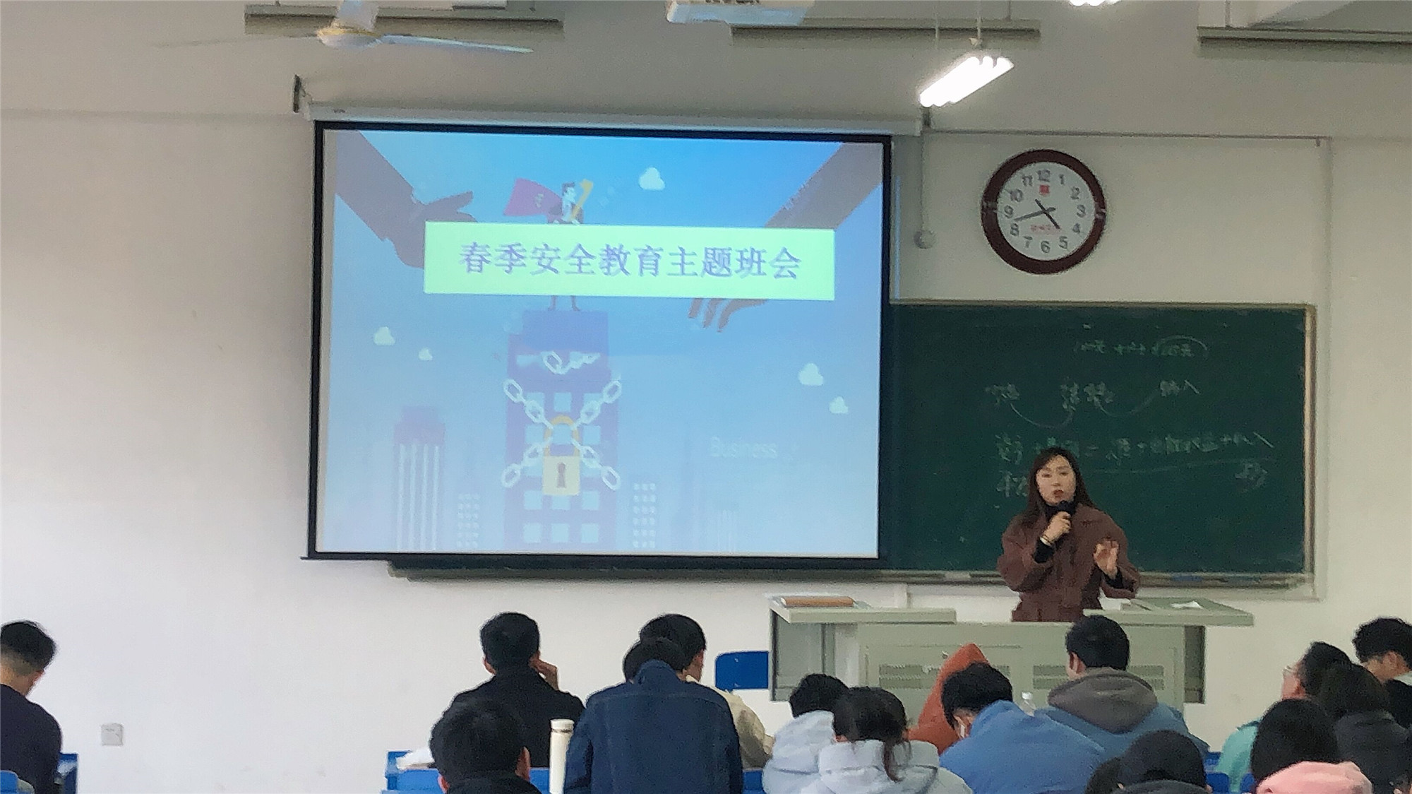 主题班会集中学习了学校和学院安全教育管理方面制度规定,围绕春季传染病预防、寝室安全、交通和出行安全、防网络诈骗、心理健康、疫情防控等方面内容,结合案例强化安全知识学习,毕业班通过微信群、QQ群等渠道对在校外就业实习毕业生进行安全教育,确保学生人身和财产安全。