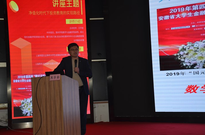 2021年4月16日晚,金沙威尼斯官网在水上报告厅举办了“国元证券知识理财讲座”,由王学金老师主讲。