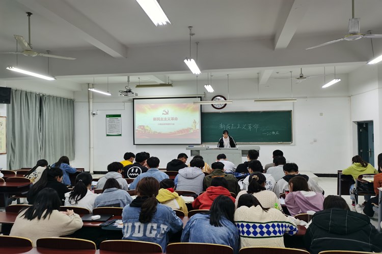 4月11日晚,金沙威尼斯官网20级数学与应用数学班在逸夫楼4406教室开展了 “新民主主义革命”专题学习会。本次活动由团支书易曼曼主持,全班同学参与此活动。