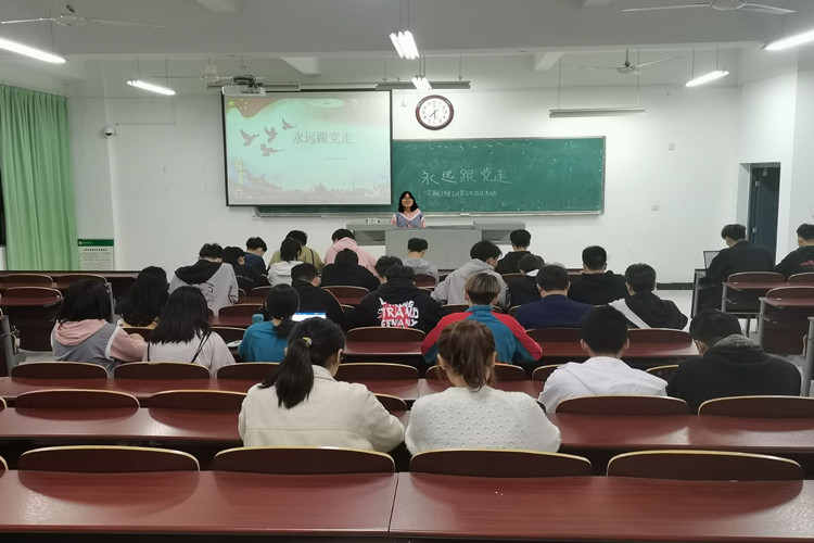 我班于4月21日在逸夫楼4402举办了以“永远跟党走”为主题的团日活动。此次团日活动由副团支书张嘉玲主持,全体同学与会。