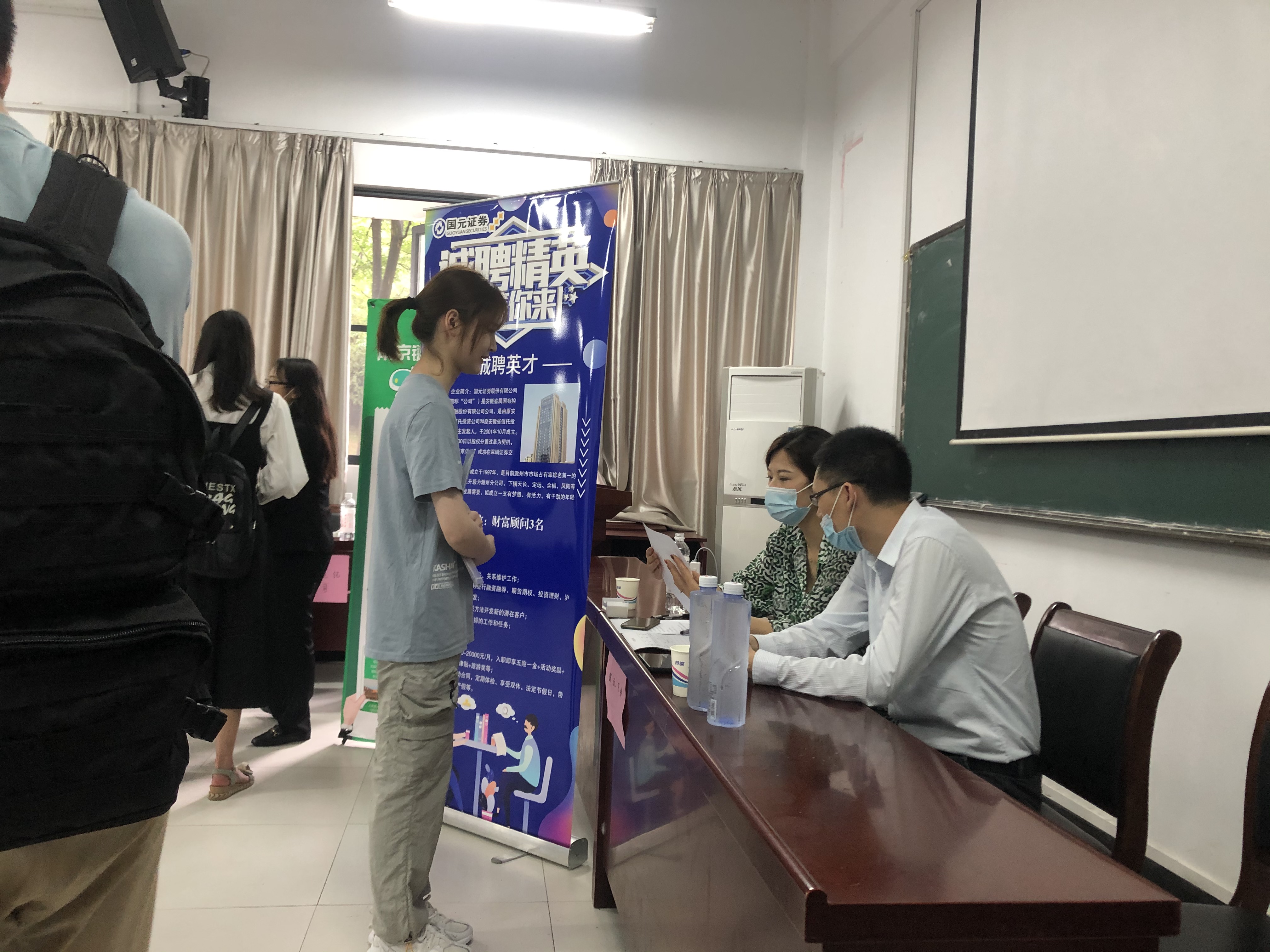 5月15日,金沙威尼斯官网举行2021届毕业生夏季招聘会。院党委书记李琳和毕业班辅导员到招聘会现场看望用人单位代表和应聘毕业生。招聘会有来自省内各地的11家企业参会,提供招聘岗位数100余个,招聘岗位用人数量200余个。参会单位中,有国元证券、平安普惠、兴业消费金融等金融企业,200余名同学参会。