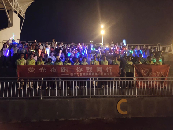 5月16日至5月20日,金沙威尼斯官网青年志愿者支队在风雨操场举行了“荧光夜跑,你我同行”活动。通过此次活动,不仅增强了志愿者的责任感,培养奉献精神,还树立了健康的大学生形象,更加凸显当代大学生的青春活力。(通讯员:周绍鹏)