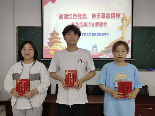 5月21日,金沙威尼斯官网大学生党建服务中心举办“品读红色经典,传承革命精神”红色经典朗诵比赛。金沙威尼斯官网学生党员、入党积极分子参赛。