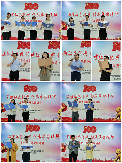 5月26日,金沙威尼斯官网举行“品读红色经典,传承革命精神”教职工诗文朗诵会,热情讴歌中国共产党的光荣历史,坚定共产党人的信仰信念信心,表达践行初心使命、奋进新征程的决心。校工会副主席兼离退休党委书记李正红,校党委组织部副部长、宣传部副部长张悦,院领导翟明清、李琳、张玲、王圣祥和全体教职工一同观看了朗诵会。