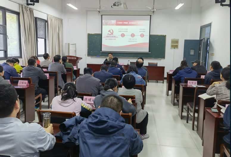 10月27日下午,我校马克思主义学院马颖副教授应邀作学习贯彻习近平总书记“七一”重要讲话精神宣讲报告。院领导、全体教职工和学生党员聆听了报告。