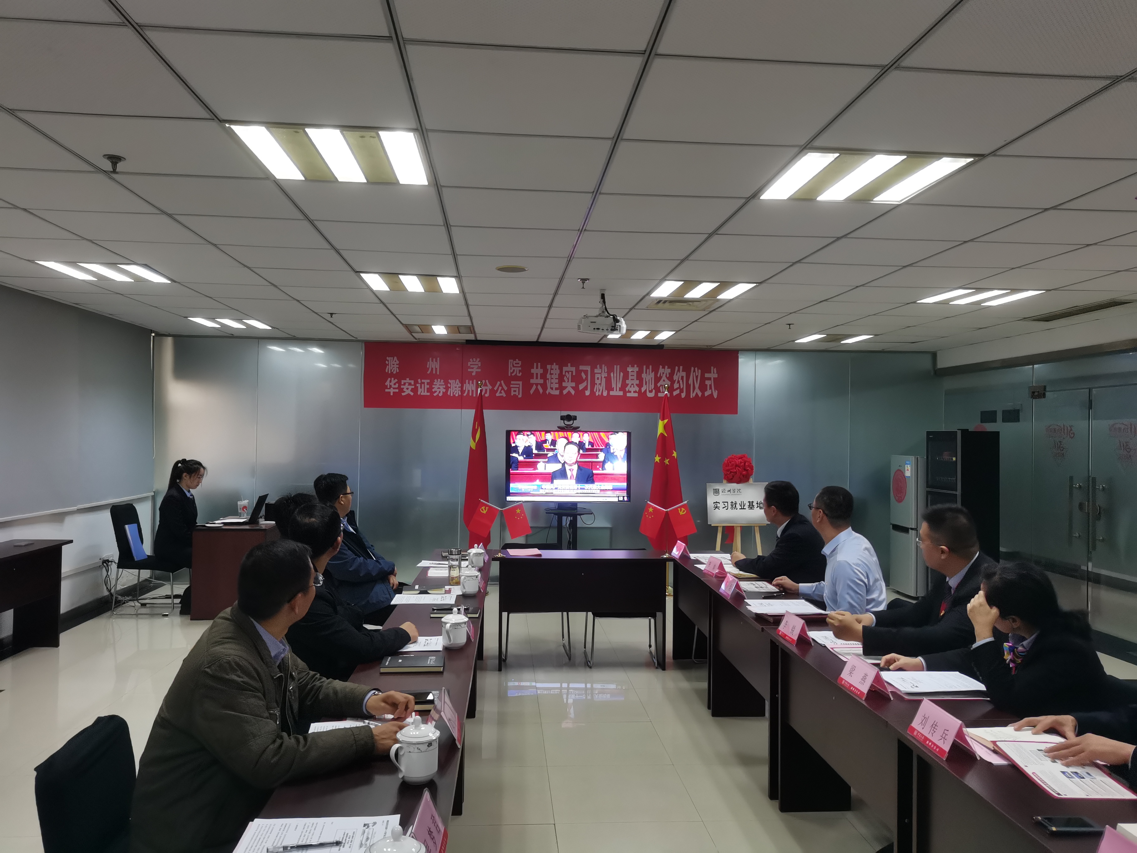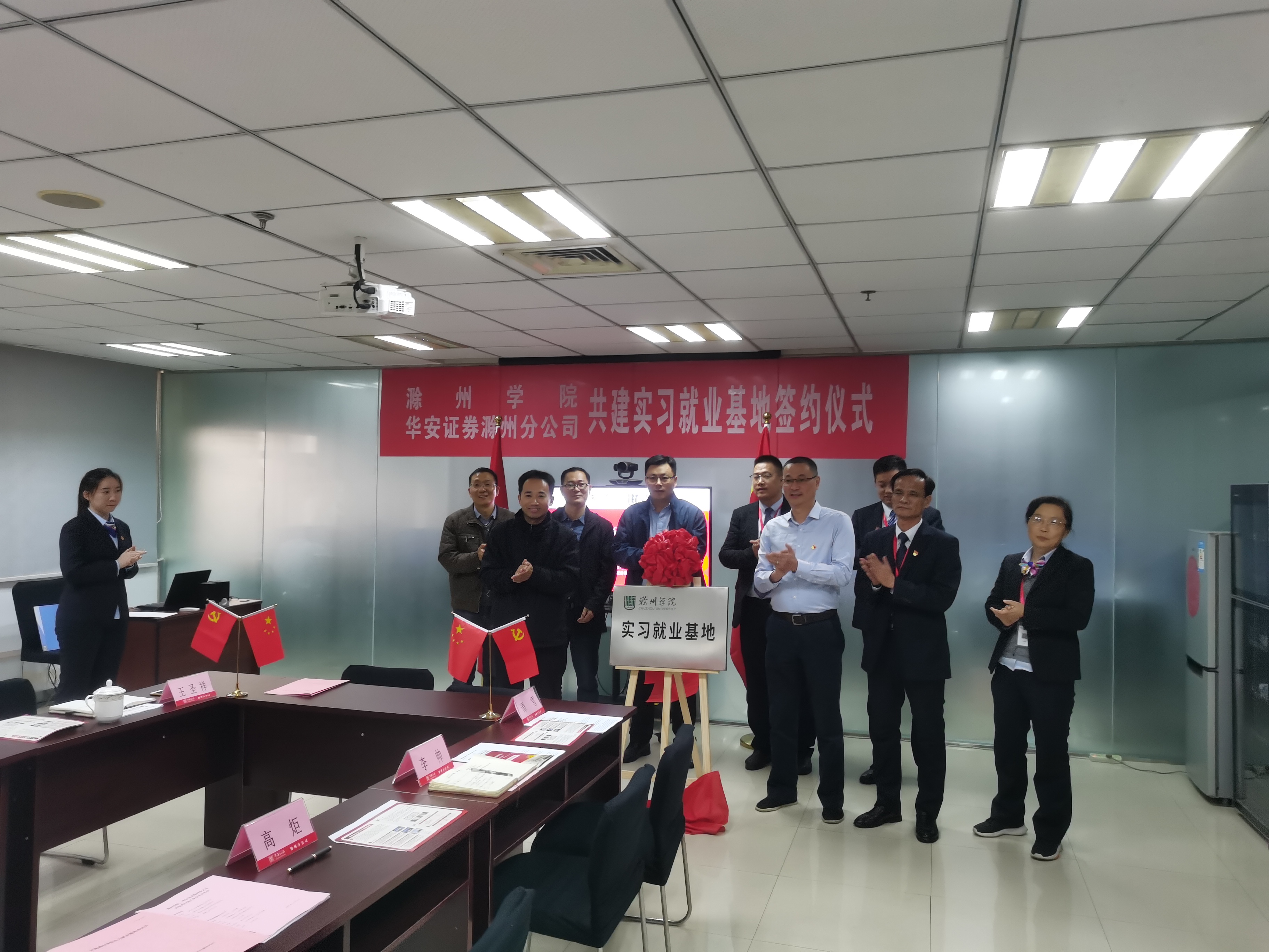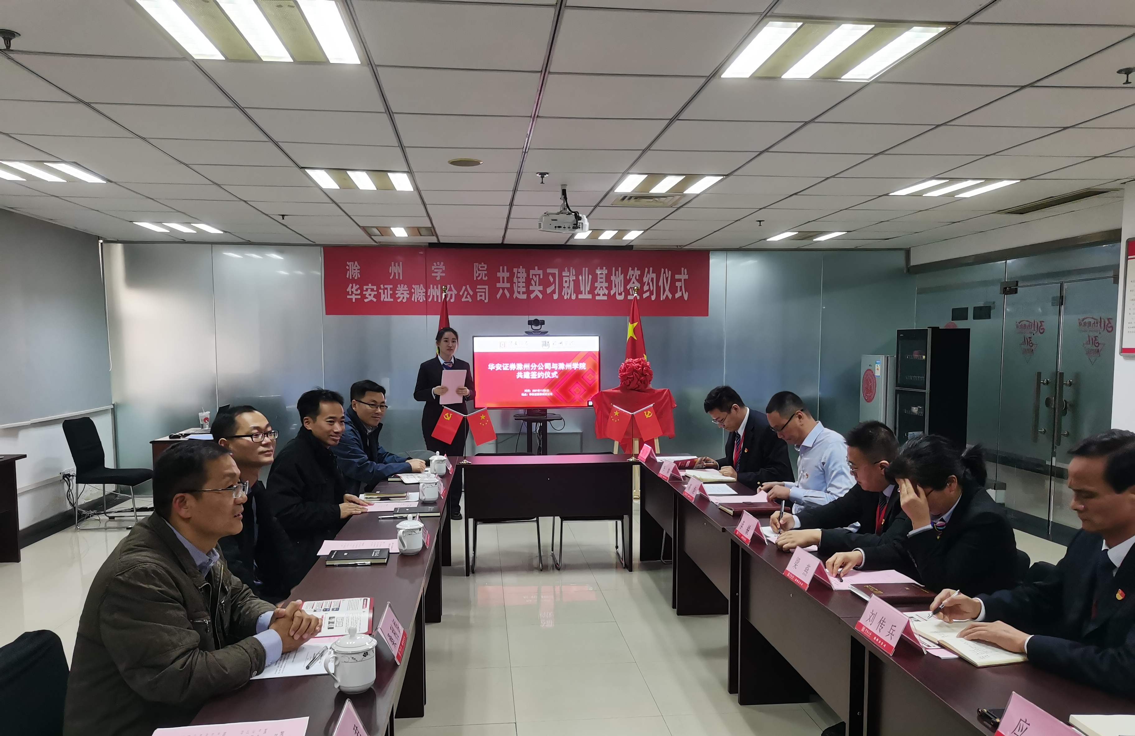 11月5日下午,金沙威尼斯官网与华安证券滁州分公司共建实习就业基地和党支部签约仪式在华安证券滁州分公司举行。院党委书记李琳、副院长王圣祥、实验室主任王大星、金融工程系主任桑利恒,华安证券滁州分公司党支部书记兼总经理高炬、财富管理中心营销总监李帅等参加签约仪式。