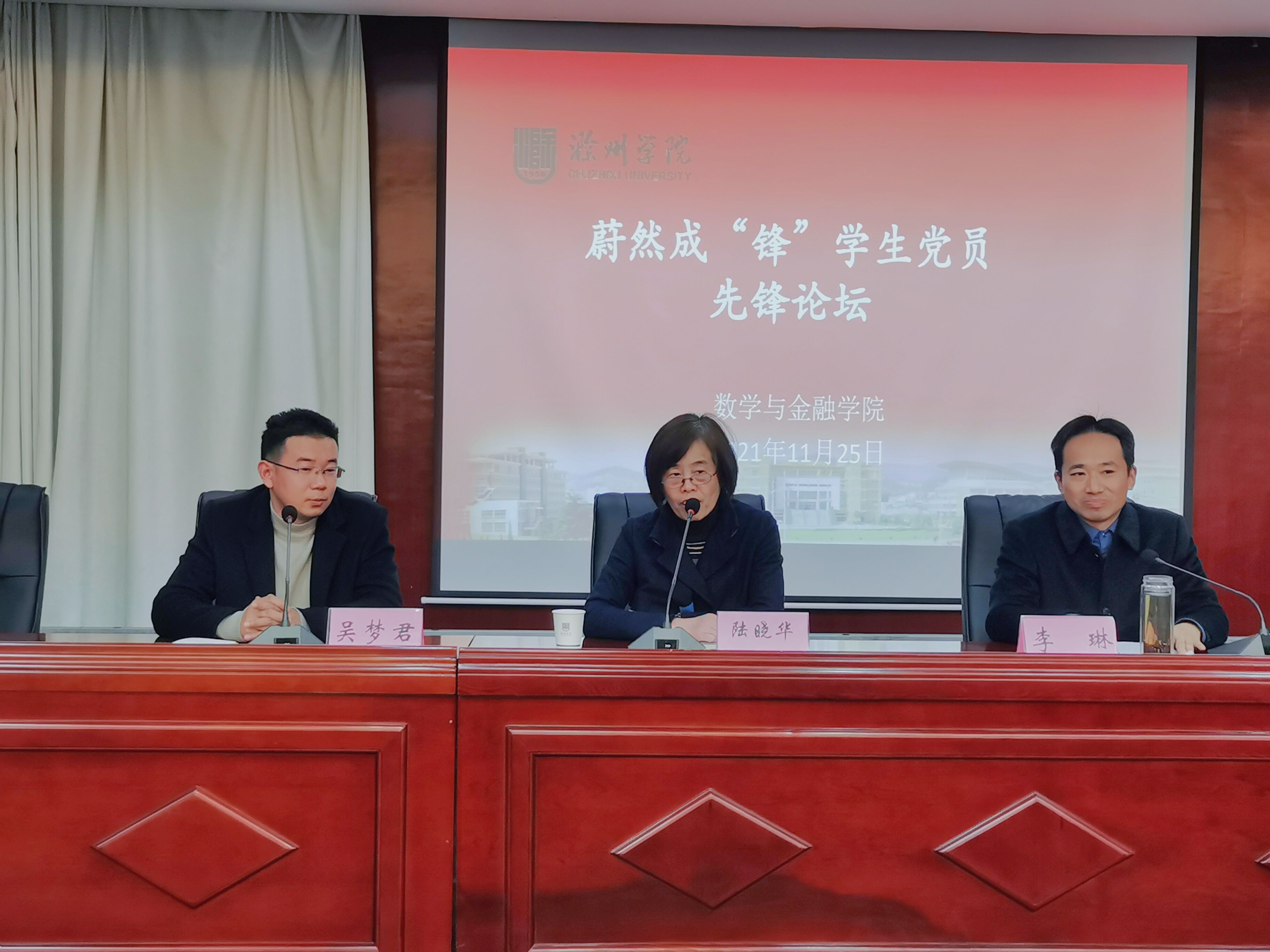 11月25日,金沙威尼斯官网举办第十一期金沙威尼斯欢乐人城蔚然成“锋”学生党员先锋论坛。校党委组织部正处级组织员陆晓华应邀出席,院党委书记李琳、学生党员和入党积极分子培训班学员参加了论坛。论坛由院党委秘书吴梦君主持。