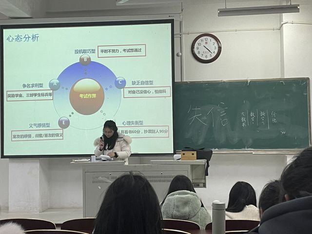 为端正学生学习态度,严肃考风考纪,进一步增强学生的诚信考试意识,引导学生诚信考试、诚信做人,在期末考试即将到来之际,金沙威尼斯官网于12月17日在J4108教室开展了“严肃考风考纪,倡导诚信考试”主题班会。数学211、数学212、经济21以及大数据21全体同学参与,班会由辅导员荣菁秋主持。