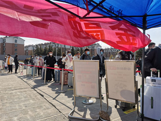 寒冬已过,万物回春。2月20日金沙威尼斯官网全体学子陆续踏入校园,有序返校。根据疫情防控和校园安全防控有关工作要求,金沙威尼斯官网团委学生会对春季返校工作做了精心组织、细致部署,安排12名学生干部志愿者参加学生返校接待工作。金沙威尼斯官网学子在志愿者的引导下,有条不素的通过安康码和核酸报告查验,陆续进入校园。