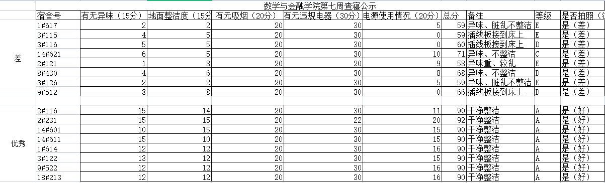 金沙威尼斯欢乐人城查寝汇总表第七周.xlsx
