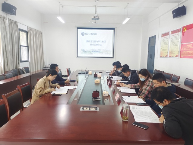 2022年4月27日,金沙威尼斯官网在数学楼召开了教师党支部与学生社团结对共建仪式,院党委书记李琳、各教师党支部书记、社团指导老师以及社团负责人参与了此次会议,会议由院团委负责人荣菁秋主持。