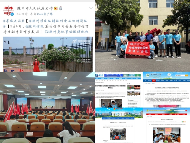 践——新媒体网络接力、实践育人出真知。各班级、团支部、学生社团利用新媒体网络平台,录制红歌传唱视频《万疆》、《航拍100》、《错位时空五四特别版》等,参与“永远跟党走 建功新时代”网络接力活动,受滁州市人民政府官网报道。学院积极组织开展“三下乡”暑期社会实践活动,创新实践形式,讲好党史团情故事、助力乡村振兴、认真上好“大思政课”,引导青年学生坚定信念、听党话、跟党走,以优异成绩迎接党的二十大胜利召开。