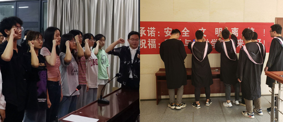 践行誓言,扬帆启航。召开毕业生党员座谈会,重温入党誓词,过大学最后一次组织生活,充分发挥模范带头作用,站好最后一班岗,做文明离校表率。毕业生自发开展“承诺安全文明离校,祝福金沙威尼斯欢乐人城越来越好”签名活动,强化初心使命,扬帆启航再出发,砥砺奋进新征程,做一个有担当作为的时代青年。(通讯员:吴梦君)