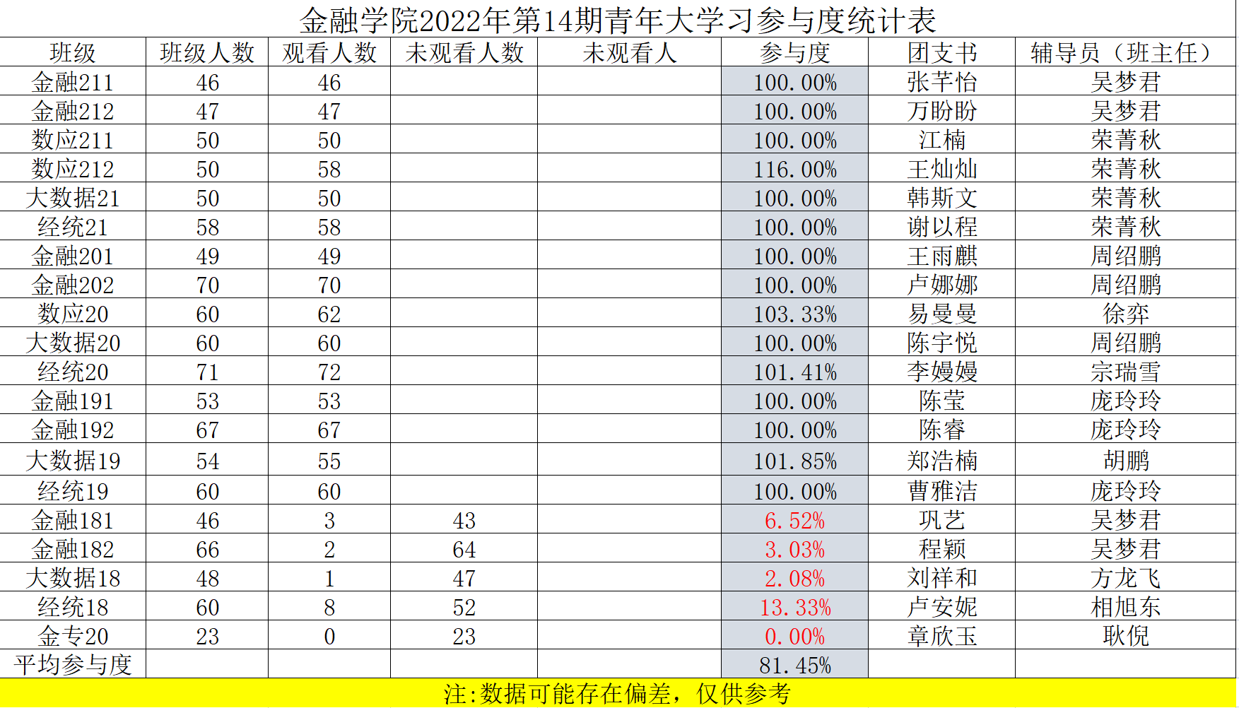 金沙威尼斯欢乐人城2022年第14期青年大学习参与度统计表.xlsx