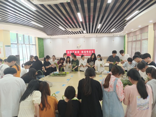 6月3日,2021级经济统计班在教工食堂举办了“悠悠艾草香,绵绵情意长”端午节包粽子主题活动。院党委书记李琳和辅导员荣菁秋老师应邀参加。