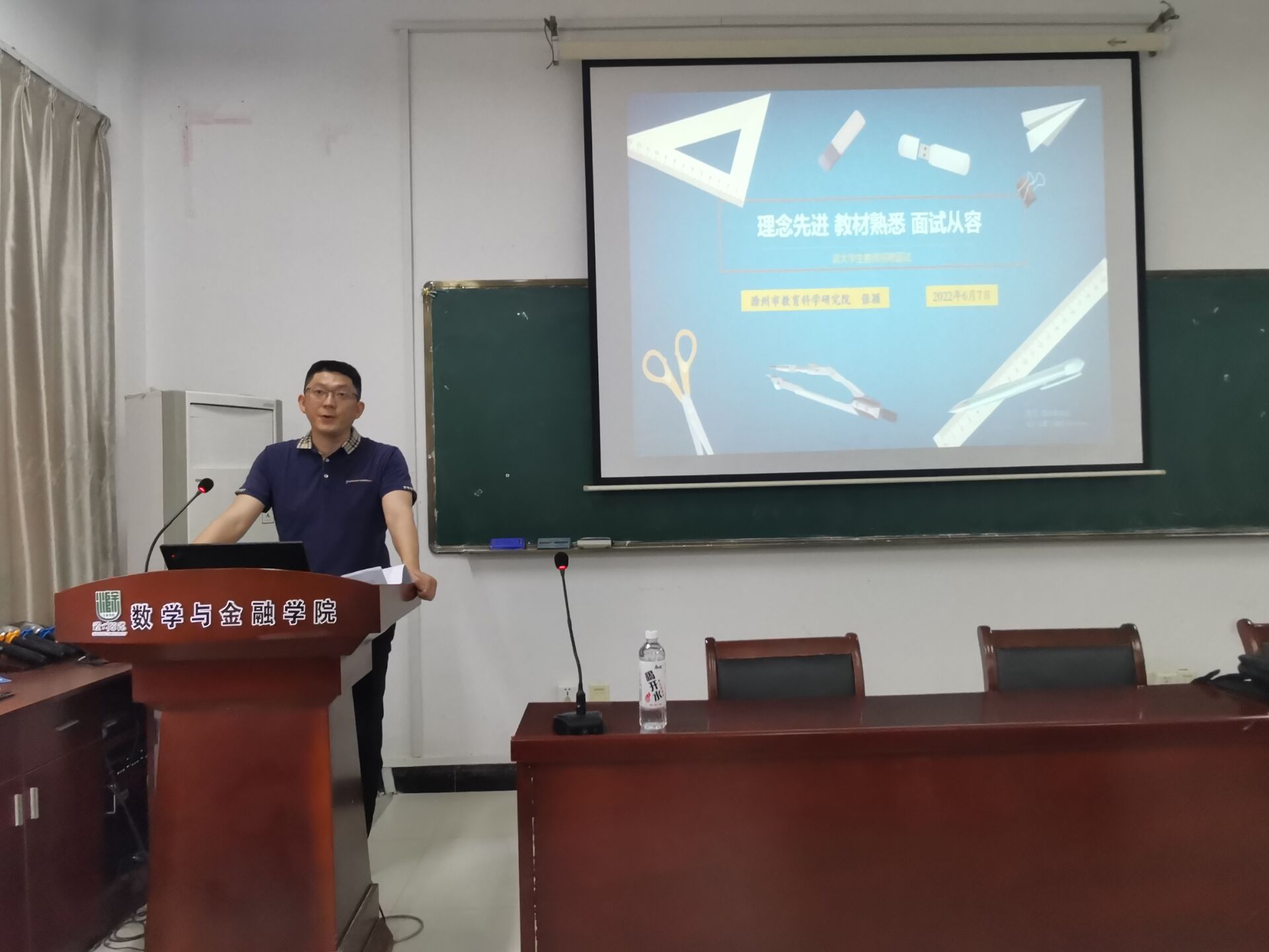6月7日,金沙威尼斯官网在数学楼106举办教师资格证备考指导会,特邀滁州市教育科学研究院张颖主任主讲,为20级数学与应用数学专业学生答疑解惑。