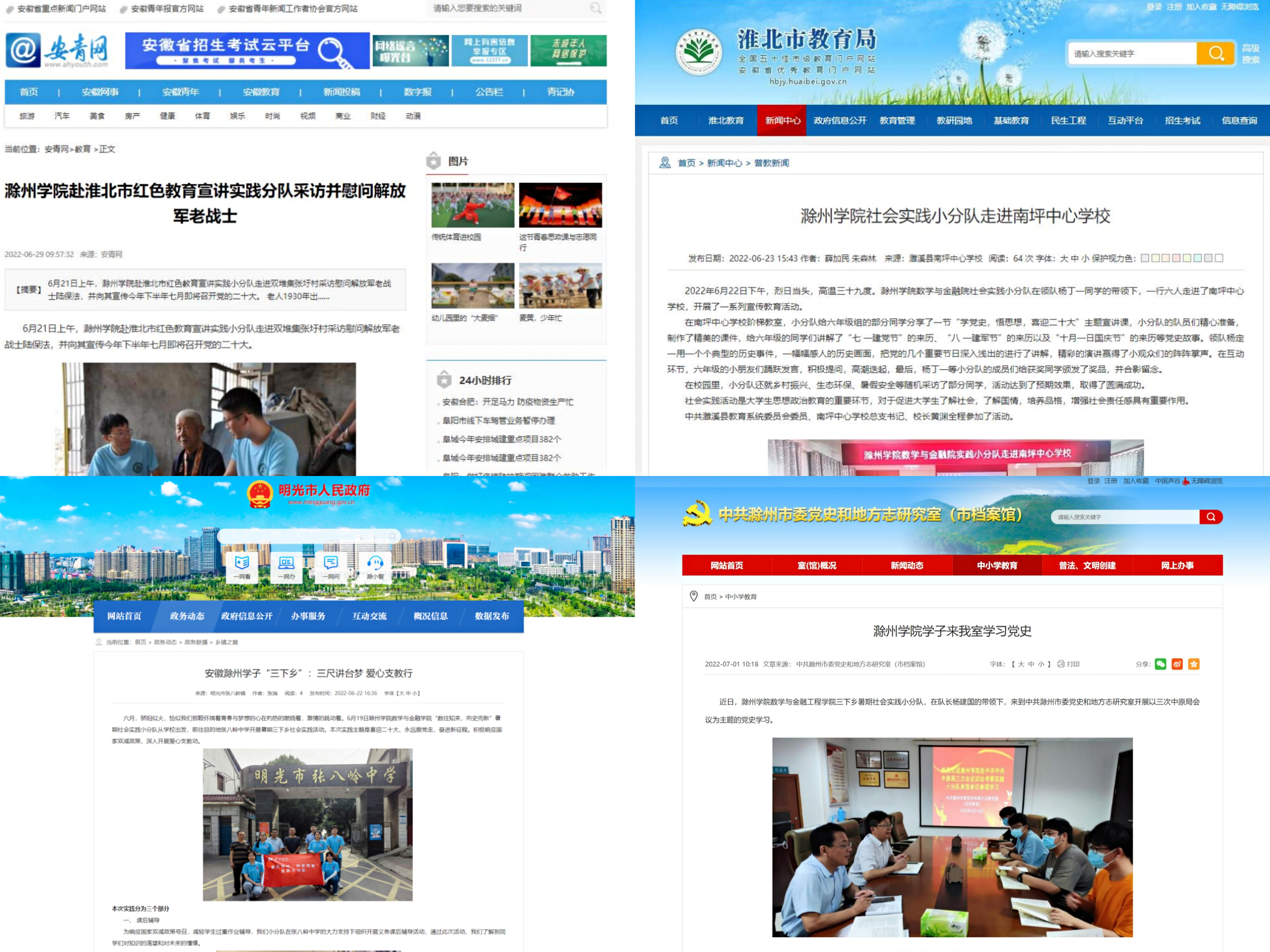 加强宣传,浓厚氛围。学院从实际出发、整合资源、丰富内容,加强实践团队活动和返乡学生个人实践活动的宣传报道。截至目前,学院实践活动受到中青网、安青网、滁州市档案馆、明光市人民政府、琅琊区政府网、淮北教育网等官网媒体报道40余次,生动反映社会实践活动的新进展新气象,提升学院暑期“三下乡”社会实践品牌传播力和社会影响力。(通讯员:吴梦君)