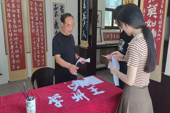 亲身体验,深入学习。实践团队向国家级非物质文化艺术(手撕书法)创始人与代表性传承人孔明惠老师进行学习。孔明惠老师带领队员参观了手撕书法工作室,指出“手撕书法”是对传统书法的创新,在传统书法的基础之上进行融合创新,想要创作出好的手撕书法作品,良好的传统书法的功底是必不可少的。他向队员展示创作过程,孔明惠老师拿纸便撕,一挥而就,即成一体。金沙威尼斯欢乐人城的“滁”字便立在我们的眼前。孔明惠老师让队员自己尝试去撕最简单的‘人’字。
