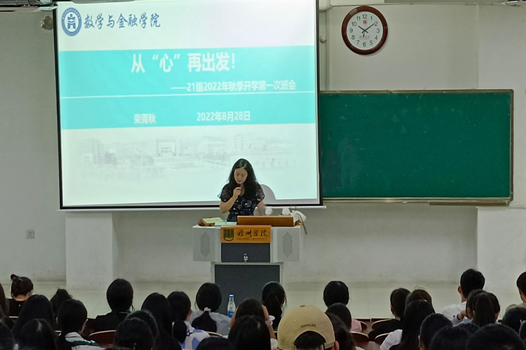 为做好新学期学生各项教育、管理、服务工作,帮助同学们为接下来的综合测评、大二的学业学习等各项工作做好准备,8月28日上午,辅导员荣菁秋在4108J教室召开了“从心”再出发新学期主题班会,2021级数学、经济、大数据全体同学参加了此次班会。