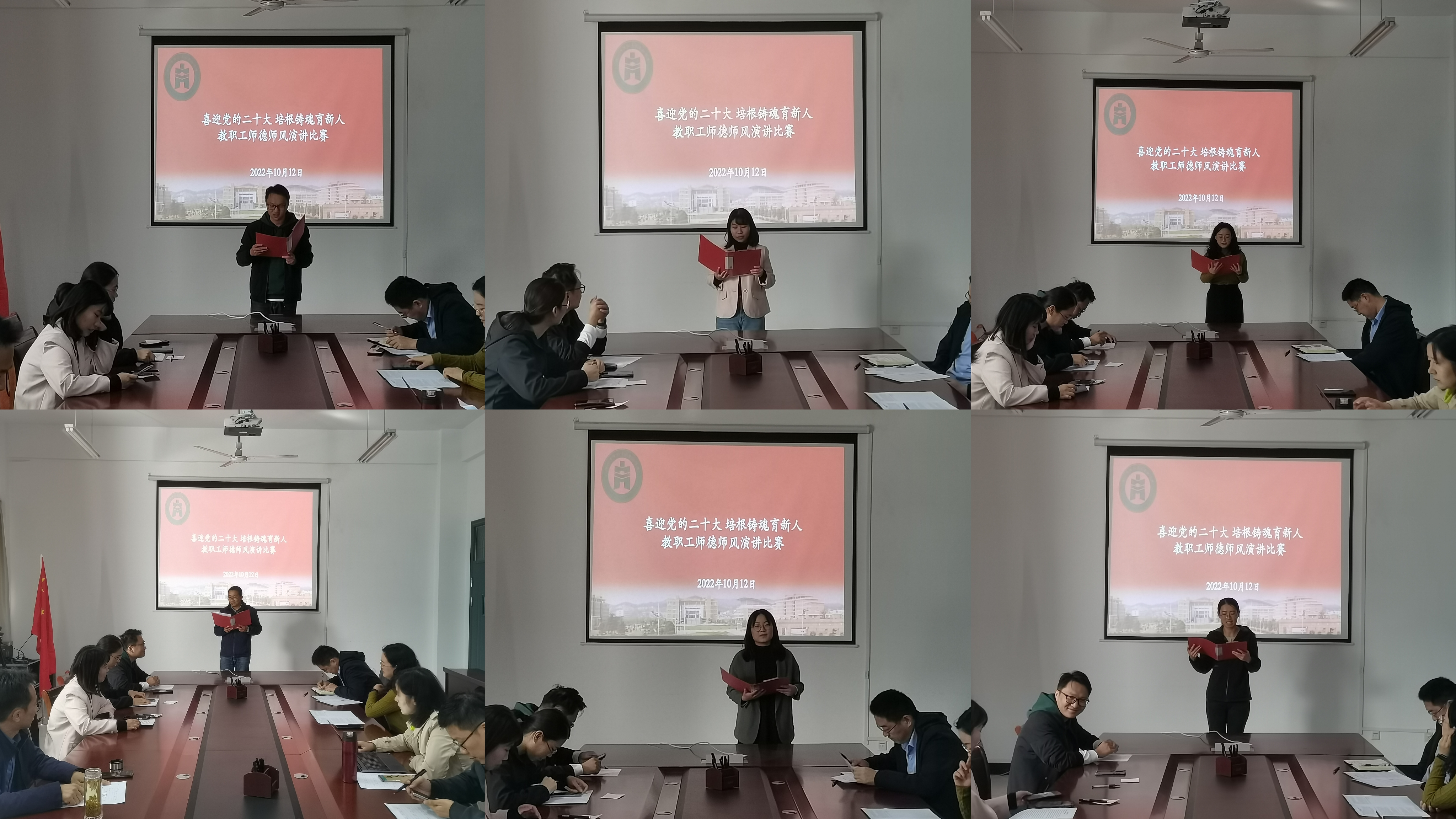 10月12日下午,金沙威尼斯官网举办“喜迎党的二十大 培根铸魂育新人”教职工师德师风演讲比赛。院党委书记李琳、各教师党支部书记、分工会主席等担任评委。