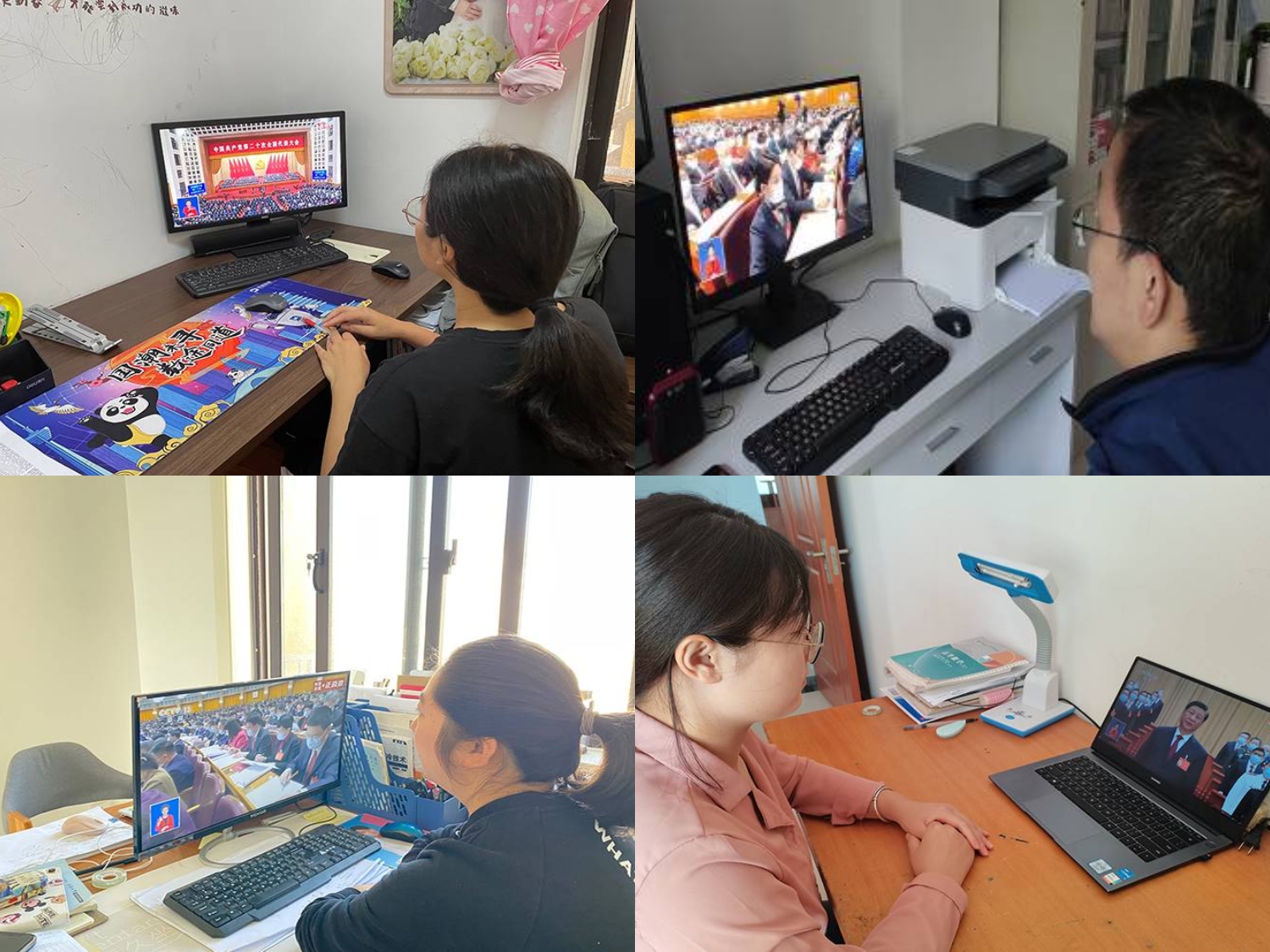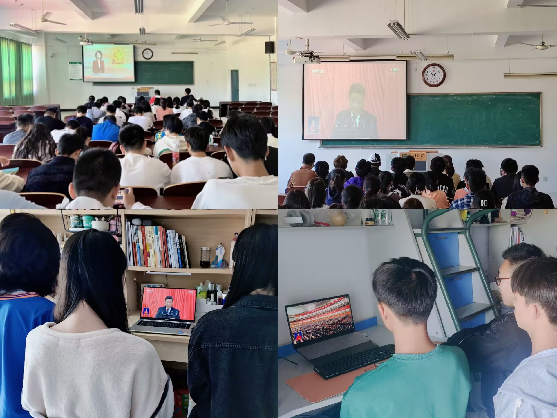 院领导、党委委员、党支部书记、学生党员等在数学楼103会议室,全院主要学生干部在数学楼106会议室,其余师生在办公室、教室、宿舍等场所,通过互联网或电视收看收听开幕会直播盛况,认真聆听习近平总书记的报告。