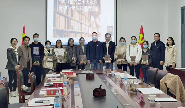 与会党员开展了学习党的二十大报告精神专项知识竞赛活动。采取线上答题,规定时间内完成。李琳和姚旺明为竞赛前10名党员颁发了奖品。