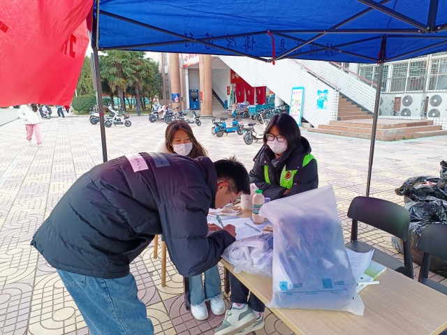 12月1日,爱心社在山下食堂门口开展“捐赠旧衣,奉献爱心”的活动。