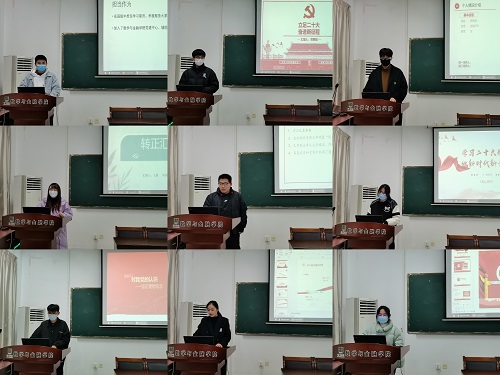 转正预备党员结合学习党的二十大精神从学习生活、担当作为、志愿奉献等方面对自己在预备期内的情况作了汇报。