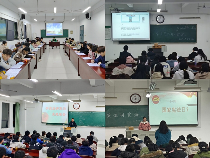 “读”诵读经典,文字浸润初心。组织学生读原著学原文,把学习宣传贯彻党的二十大精神与学习《习近平谈治国理政》第四卷、《习近平的七年知青岁月》等书目相结合。组织学生读习近平总书记讲话“金句”,结合自身专业阐释,以所学所思所想为基,提高政治站位,展示自己对习近平总书记讲话“金句”的理解与感悟。组织开展“宪法宣传周”活动,纪念现行宪法公布施行四十周年,开展“学习二十大,学法我先行”的宪法晨读等系列活动,增强学生理论素养和法治思维。