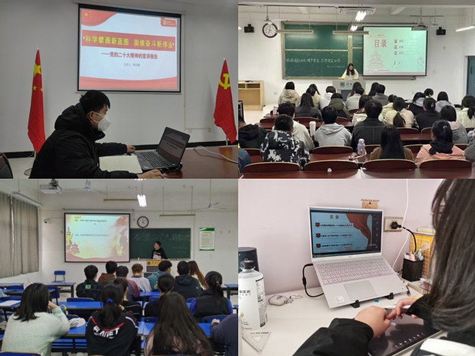 “讲”集中宣讲,凝聚奋进力量。辅导员面向学生展开宣讲活动。大学生党建服务中心组建学生党员宣讲团,结合寒假社会实践进行返家乡开展党的二十大精神宣讲活动。创新宣讲方式,充分发挥新媒体平台作用,坚持线上线下相结合,发动全院党员、团干宣讲团成员,精心组织宣讲,多角度、全方位在师生中宣传解读,推动学习贯彻党的二十大精神工作走深走实。